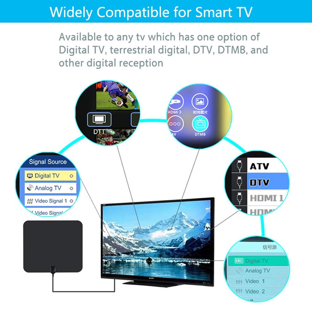 Max 120 Miles 200 Km Dautonomie Antenne Tnt Interieure Avec Signal Amplificateur Booster And 4 3m Cable Coaxial Vhf Uhf Fm Antenne Tv Interieur Soutenir Smart Tv Hd 4k 1080p